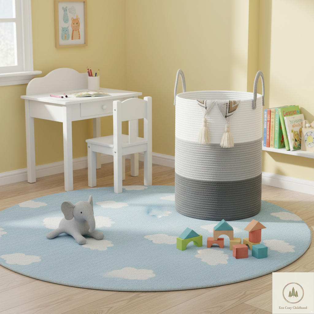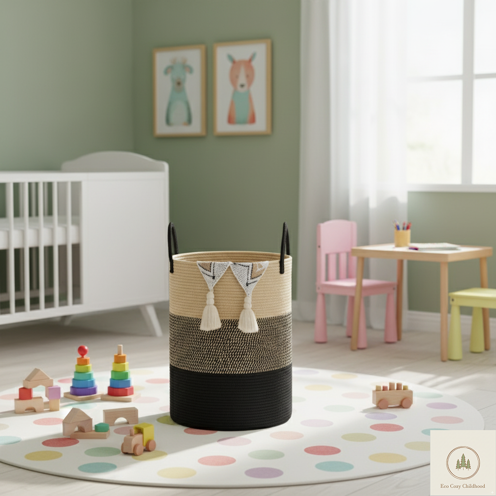 Eco-Friendly Handwoven Cotton Rope Laundry Basket – Stylish Nursery Organizer for Baby Clothes & Toys